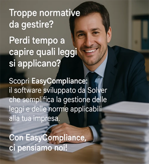 Scopri EasyCompliance: il software che semplifica la gestione delle leggi e delle norme applicabili alla tua impresa.